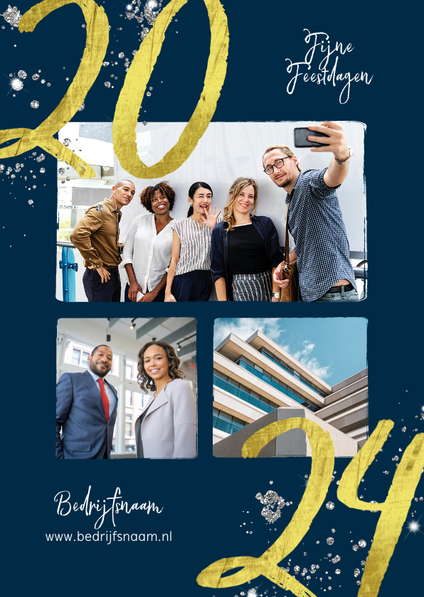 Zakelijke kerstkaart 2024 goud glitter foto’s | Kaartje2go