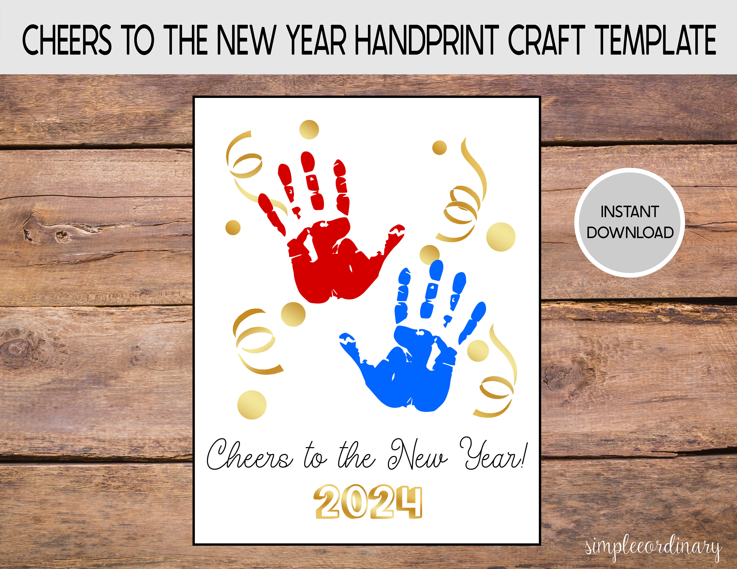 2024 Proost op het nieuwe jaar Handafdruk Ambacht Afdrukbare
