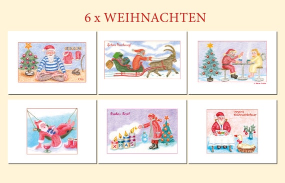 Christmas Card Set 6 Postcards Yoga Drinking Punch With Etsy